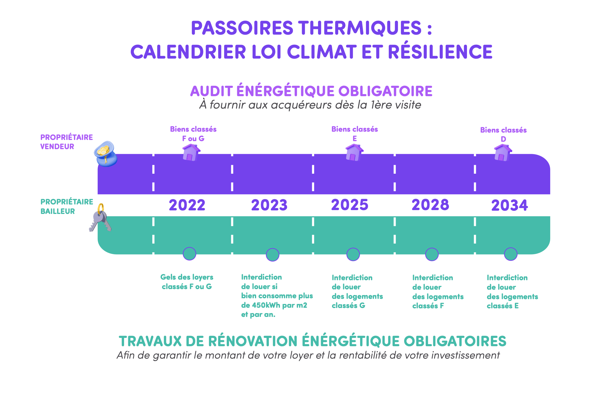 À partir du 1er janvier 2025, les logements classés G ne peuvent plus être proposés à la location en France métropolitaine. Suivront les logements classés F en 2028, puis ceux classés E en 2034, qui seront considérés comme « non décents » du point de vue énergétique.